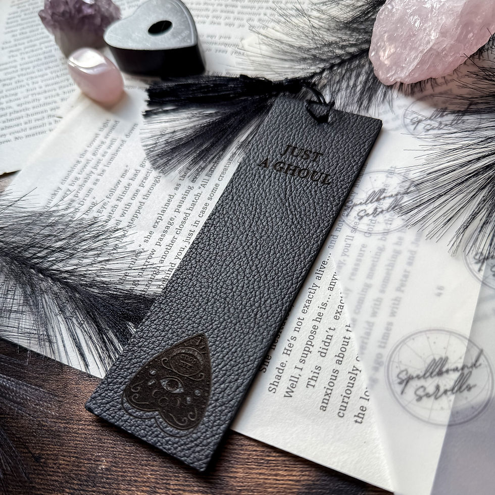 Just a Ghoul Leather Halloween Bookmark with Tassel